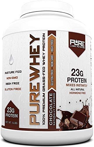 Pure Label Nutrition 100% Grass-Fed Whey Protein Isolate, 2lb Chocolate, No Fat, No Lactose, Micro-Filtered, Cold Processed, GMO Free, rBGH Free, Soy Free, Gluten Free, Zero Carbs and No Sugar Added