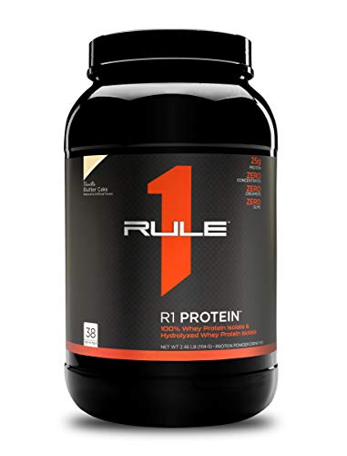 Rule One Proteins, R1 Protein - Vanilla Butter Cake, 25g Fast-Acting, Super-Pure 100% Isolate and Hydrolysate Protein Powder with 6g BCAAs for Muscle Growth and Recovery, 2.5 Pounds, 38 Servings