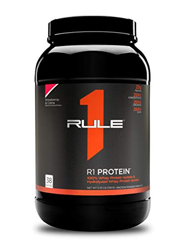 Rule One Proteins, R1 Protein - Strawberries and Crème, 25g Fast-Acting, Super-Pure 100% Isolate and Hydrolysate Protein Powder with 6g BCAAs for Muscle Growth and Recovery, 2.5 Pounds, 38 Servings