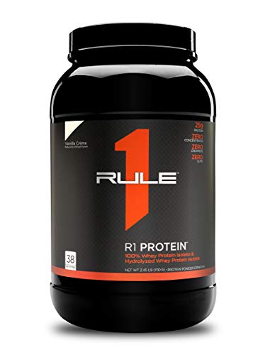 Rule One Proteins, R1 Protein - Vanilla Crème, 25g Fast-Acting, Super-Pure 100% Isolate and Hydrolysate Protein Powder with 6g BCAAs for Muscle Growth and Recovery, 2.5 Pounds, 38 Servings
