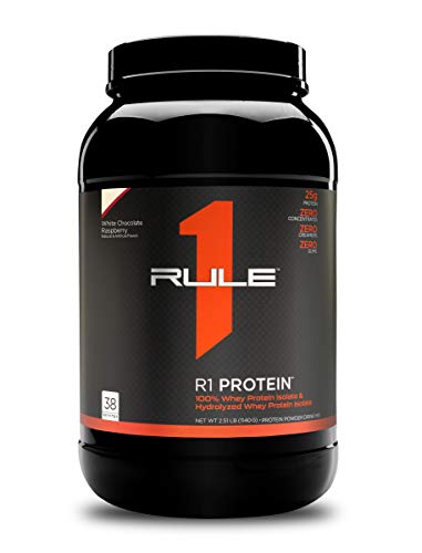 Rule One Proteins, R1 Protein - White Chocolate Raspberry, 25g Fast-Acting, Super-Pure 100% Isolate and Hydrolysate Protein Powder with 6g BCAAs for Muscle Growth And Recovery, 2.5 Pounds, 38 Servings