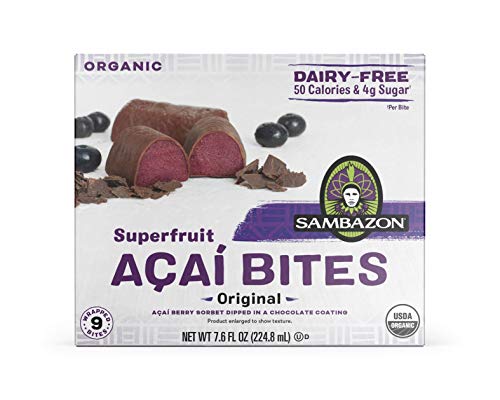 Sambazon Organic Superfruit Açaí Bites, Açaí Berry Sorbet with Dark Chocolate, 9 Count (Frozen)