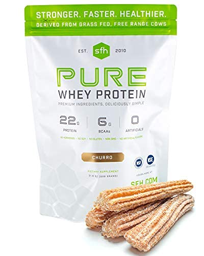 SFH Pure Whey Protein Powder (Churro) by SFH | Best Tasting 100% Grass Fed Whey | All Natural | 100% Non-GMO, No Artificials, Soy Free, Gluten Free | (Churro, 31.6 Ounce (Pack of 1))