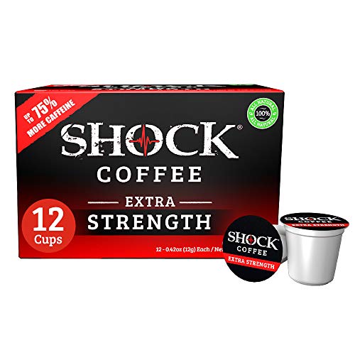 Shock Coffee Extra Strength Single Serve Cups. Up to 75% more Caffeine than Regular Coffee. 12 count - Compatible with Keurig K-Cup Brewers 2.0