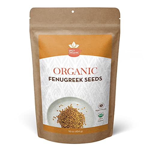 SPICY ORGANIC Fenugreek Seeds - Freshly Packed Methi Seeds - Fenugreek Seeds for Hair Growth - 100% Pure USDA Organic - 16 OZ