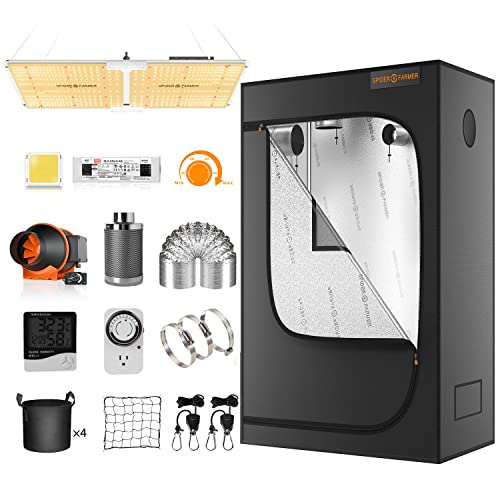Spider Farmer Grow Tent Kit Complete SF-2000 LED Grow Light Dimmable Full Spectrum Use Samsung Diodes MeanWell Driver 24" x 47" x 71" 1680D Growing Tent 4 Inch Ventilation System Setup Package