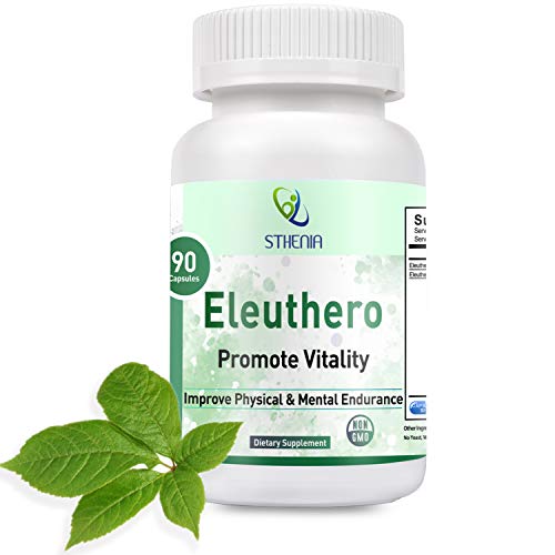 Sthenia Eleuthero Root 500 mg Supplements 90 Vegan Capsules for Healthy Energy and Immune Support, Improve Physical Stamina and Mental Endurance
