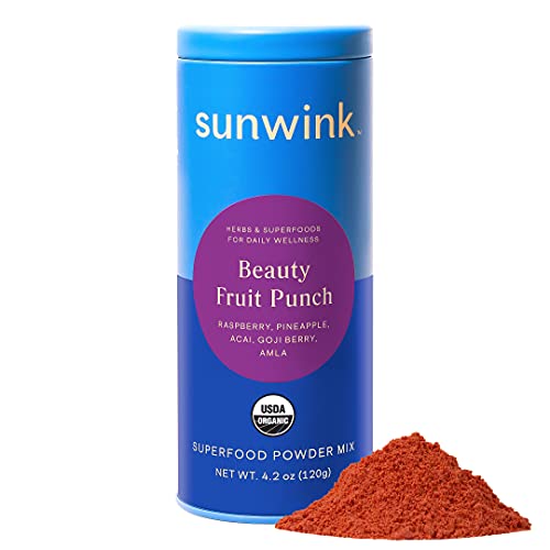 Sunwink Beauty Fruit Punch Organic Superfood Powder Mix Antioxidants for Glowing Radiant Skin, Hydration Support, Plant Based Drink Mix with Acai Berry, Amla, Goji Berry, No Added Sugar (40 Servings)