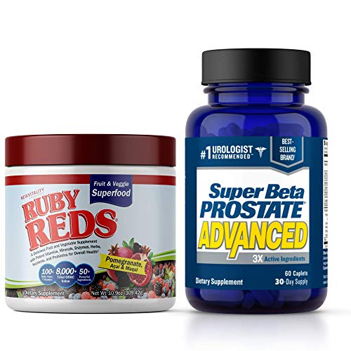 Super Beta Prostate Advanced Supplement for Men - Reduce Bathroom Trips Day & Night, Support Healthy Prostate + Ruby Reds Fruit & Vegetable Superfood Powder for Energy, Immune Support & Overall Health