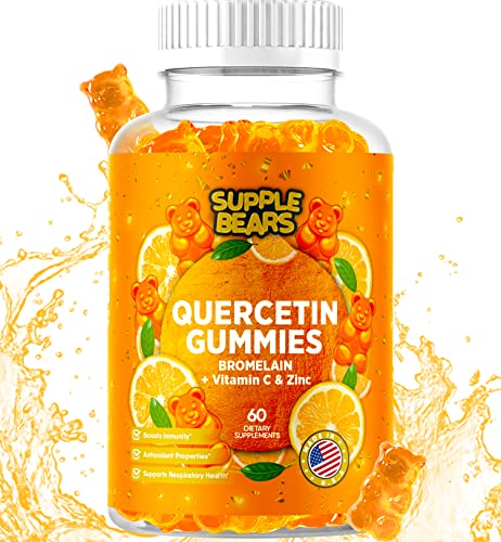 Supplebears Quercetin with Bromelain Gummies - Vitamin C + Zinc & Vitamin D3 – Extra Strength Immune Support Booster for Kids and Adults - 60 Quercetin Gummies - Made in The USA