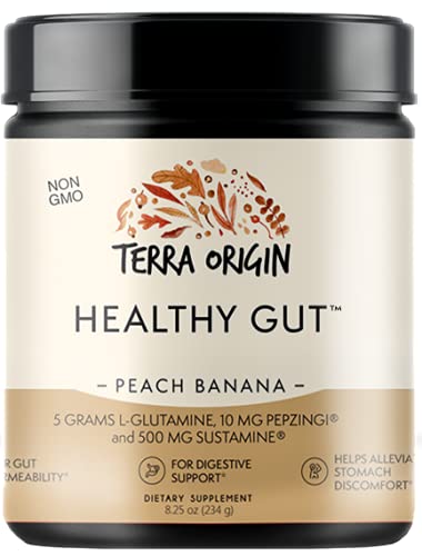 Terra Origin Healthy Gut Peach Banana with L-Glutamine, Zinc, Glucosamine, Slippery Elm Bark, Marshmallow Root and More! Supports intestinal Permeability, IBS, Bloating, Gas and Constipation*