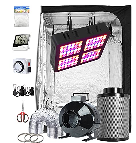 TopoGrow Grow Tent Complete Kit 300W LED Grow Light Full-Spectrum Indoor Hydroponics 24"X24"X48" Grow Tent 4" Ventilation Kit with Hangers,Hygrometer, Shear, Timer,Trellis Netting 2'X2' Setup