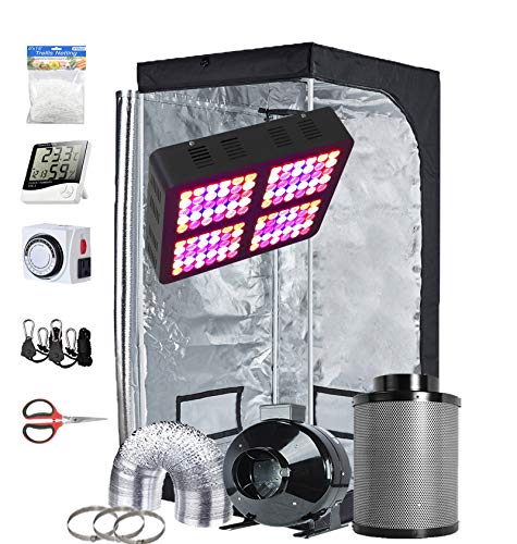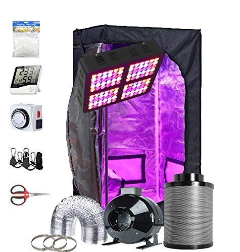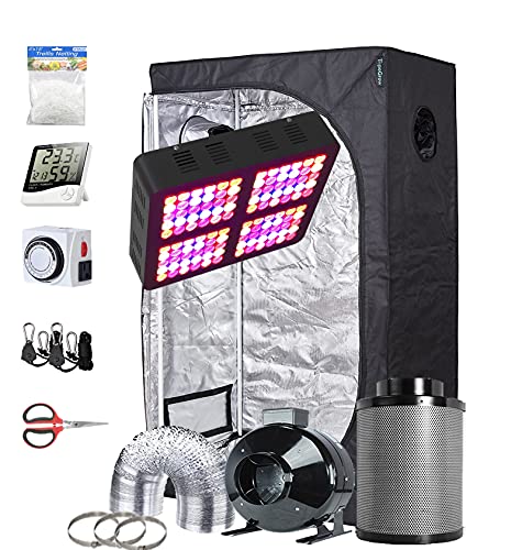 TopoGrow Small 2'x2' Grow Tent Complete Kit 600W Led Grow Light Full-Spectrum, 24"X24"X48" Growing Tent 4" Fan Filter Ventilation Kit with Tent Accessories for Hydroponics Indoor Plants Growing System