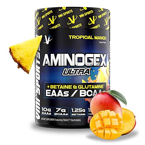 VMI Sports | Aminogex Ultra | BCAA Powder | Amino Acids + Betaine and Glutamine | Amino Acid Post Workout Recovery Drink | Intra Workout Drink with TRAACS Electrolytes | (Tropical Mango, 30 Servings)