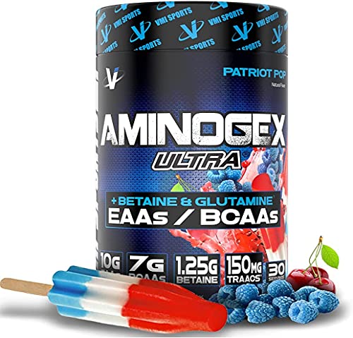 VMI Sports | Aminogex Ultra | BCAA Powder | Amino Acids + Betaine and Glutamine | Amino Acid Post Workout Recovery Drink | Intra Workout Drink with TRAACS Electrolytes | (30 Servings) (Patriot Pop)