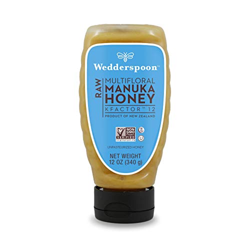 Wedderspoon Raw Multifloral Manuka Honey KFactor 12, Unpasteurized, Genuine New Zealand Honey, Multi-Functional, Non-GMO Superfood, Convenient Squeeze Bottle, 12 Ounce