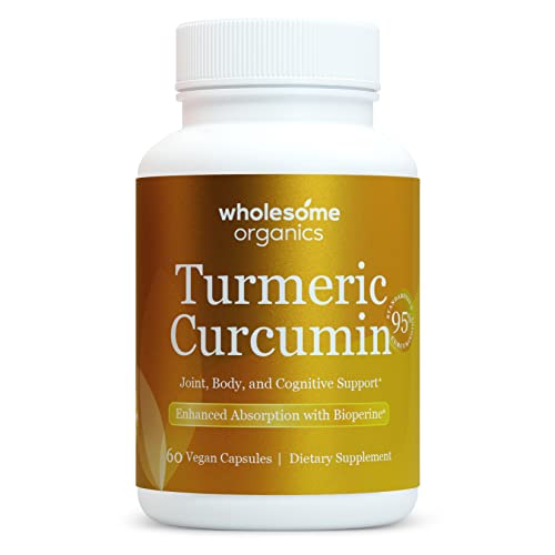 Wholesome Organics Turmeric Curcumin - 1300mg - 95% Curcuminoids with Bioperine Black Pepper Extract - Natural Joint, Healthy Inflammatory & Cognitive Support - Non-GMO, Gluten Free - 60 Capsules